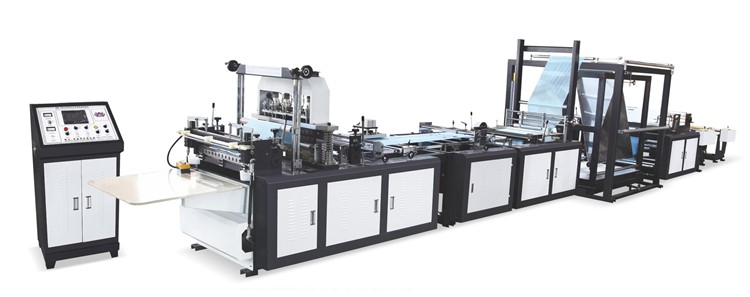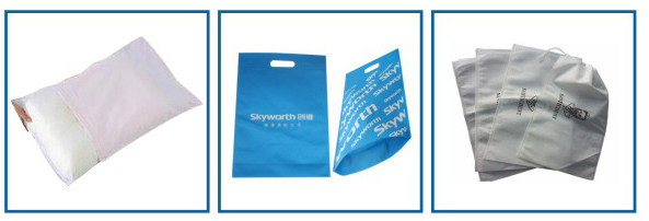 This machine is suitable for non woven fabric material, can fully automatic makenon woven bag products with different bag type and size, as flat bag, shoppingbag, gift bag, clothes bag, handle loop bag, vest bag, shoes bag, drawstring bagand so on, except box bag.